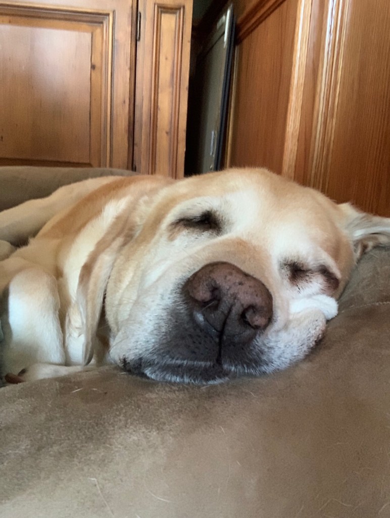 When his arthritis became too much for him to walk up the stairs, he moved into my mom’s office. You could hear his collar jingle as he turned over, his sleepy sighs, and even his snores if you left your door open.